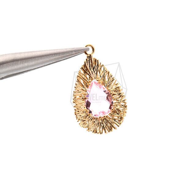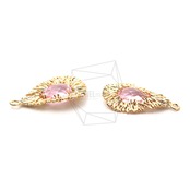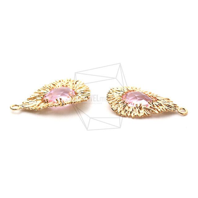 PDT-2089-G/2PCS/Middle Pink Glass Wire Teardrop Pendant/14mm X 23mm/Gold Plated Over Brass