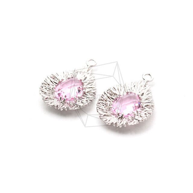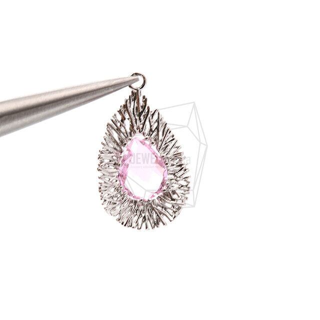 PDT-2089-R/2PCS/Middle Pink Glass Wire Teardrop Pendant/14mm X 23mm/Rhodium Plated Over Brass