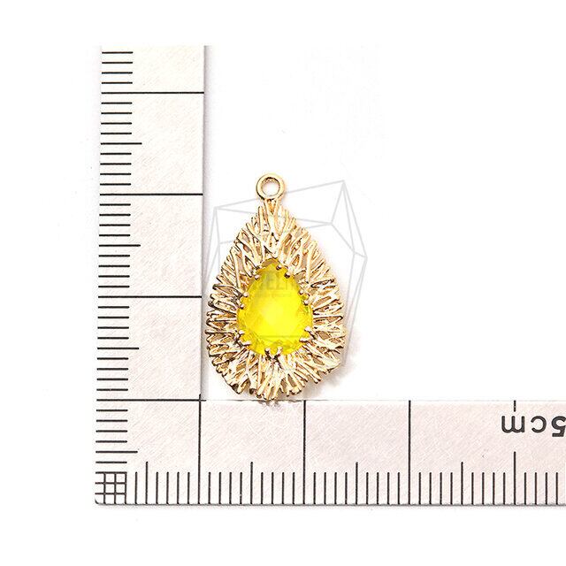 PDT-2090-G/2PCS/Middle Yellow Glass Wire Teardrop Pendant/14mm X 23mm/Gold Plated Over Brass