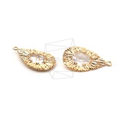PDT-2091-G/2PCS/Middle Glass Wire Teardrop Pendant/14mm X 23mm/Gold Plated Over Brass