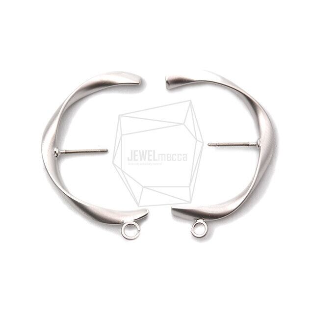 ERG-1062-MR/2PCS/Twisted Half Round Post Earring/20mm X 34mm/Matte Rhodium Plated Over Brass,Titanium Post