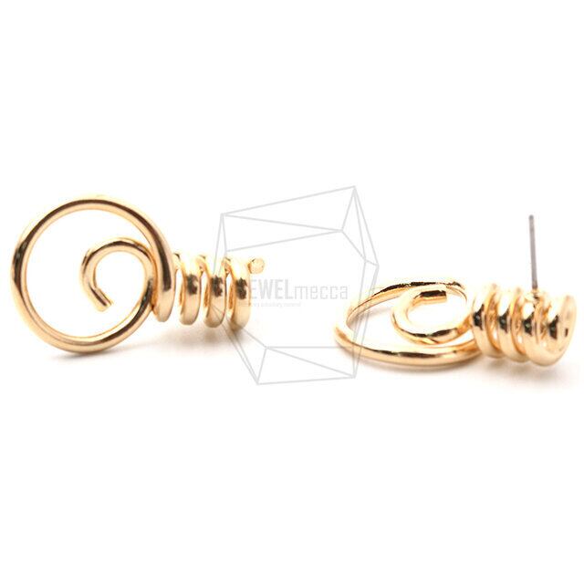 ERG-1063-G/2PCS/Wire Spring Post Earring/17mm X 28mm/Gold Plated Over Brass,Titanium Post