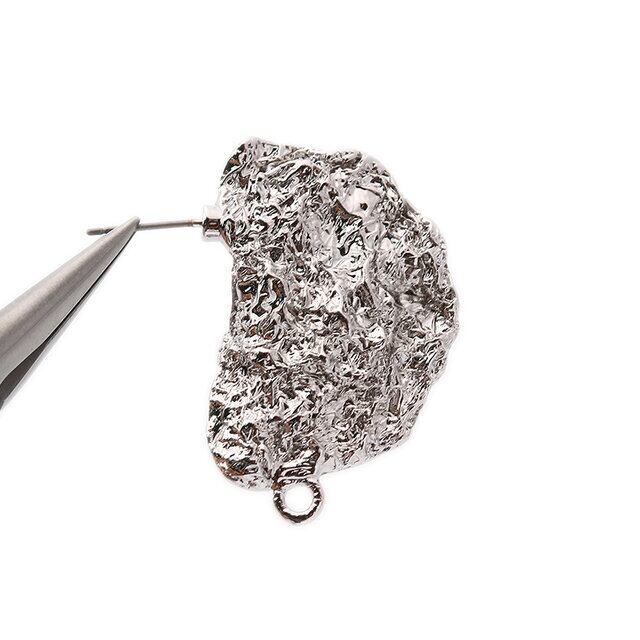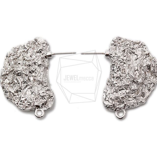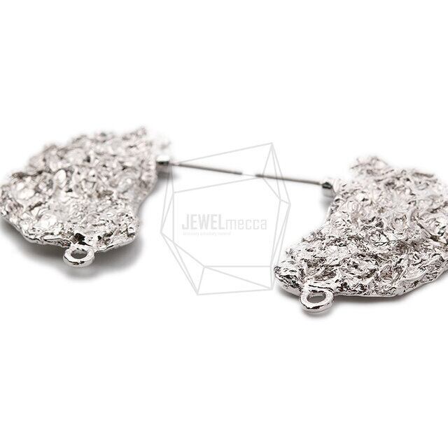 ERG-1064-R/2PCS/Hammered Halfmoon Post Earring/25mm X 39mm/Rhodium Plated Over Tin,Titanium Post