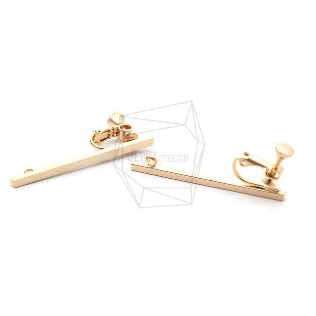 ERG-1066-MG/2Pcs-Long Bar Earring/Non Pierced Screw Back Clips Earring/ 2mm x 40mm /Matte Gold Plated over Brass
