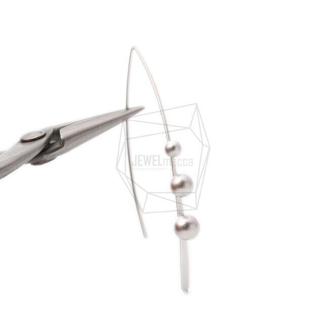 ERG-1071-MR/2PCS/ball V Shape earring Wire/25mm X 60mm/Matte Rhodium Plated Over Brass