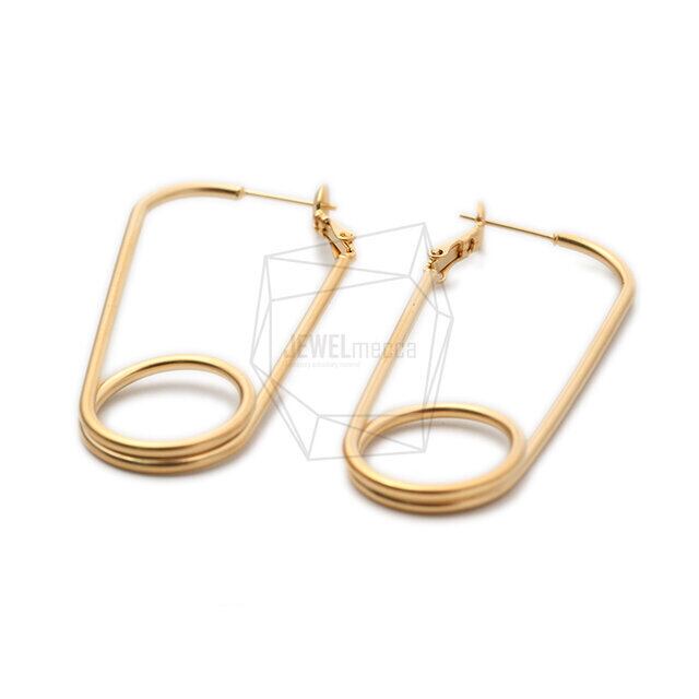ERG-1074-MG/2Pcs-Safety Pin Post Earring/ 23mm x 55mm /Matte Gold Plated over Brass