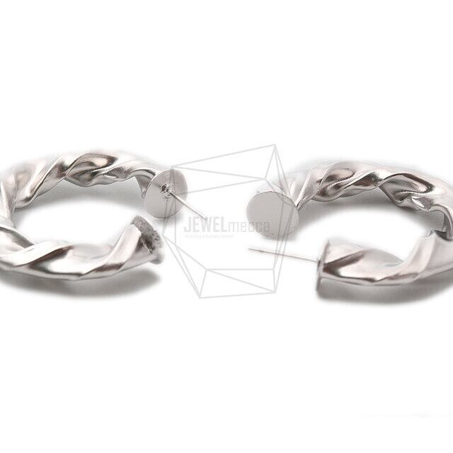 ERG-1075-MR/2Pcs-Twist Round Post Earring/ 38mm x 38mm /Matte Rhodium Plated over Brass