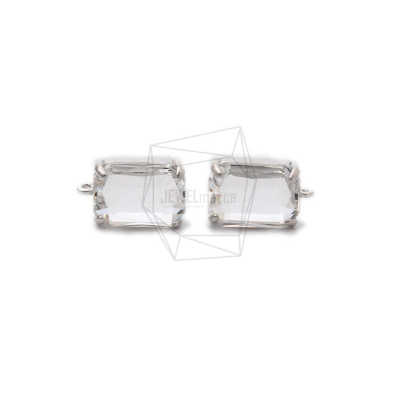 ERG-1082-MR/2Pcs-Square Glass Post Earring/10mmx15mm /Matte Rhodium Plated over Brass