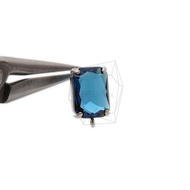 ERG-1083-MR/2Pcs-Square Glass Post Earring/10mmx15mm /Matte Rhodium Plated over Brass