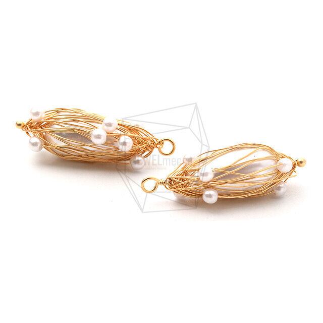 PDT-2096-MG/2Pcs/Imitation Pearl Charm/15mmX 36mm/Matte Gold Plated over brass
