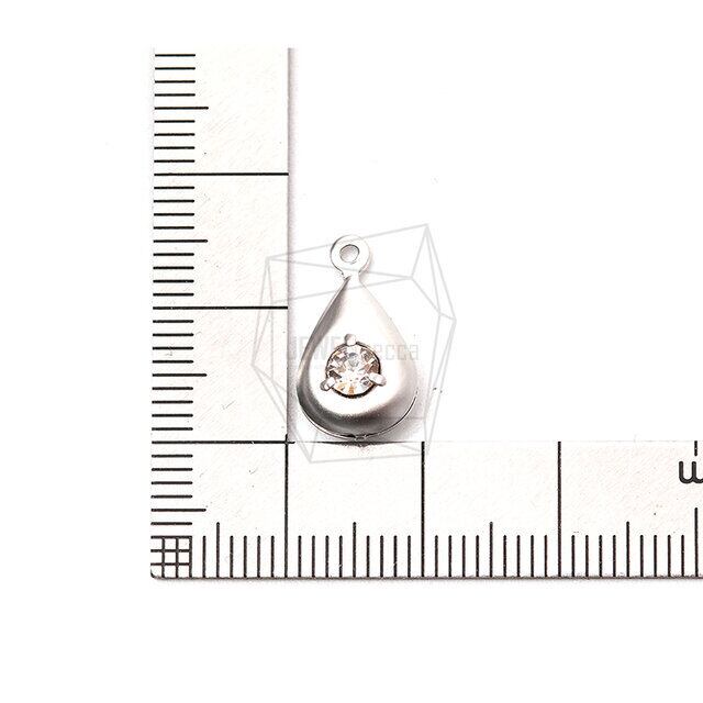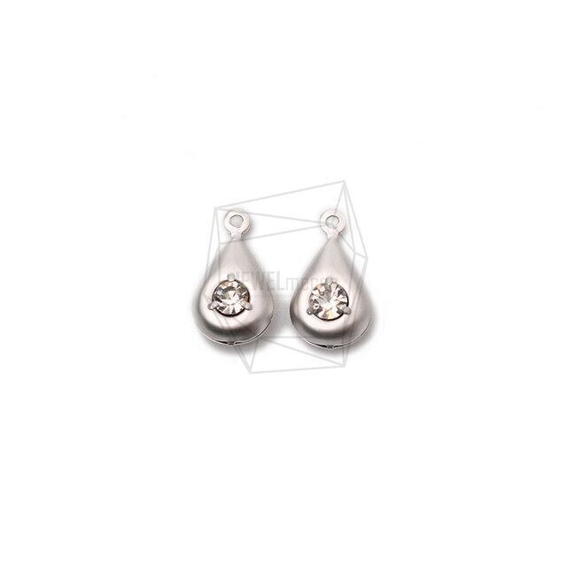 PDT-2099-MR/4PCS/Glass Tear Drop Pendant/10mm X 16mm/Matte Rhodium Plated Over Brass