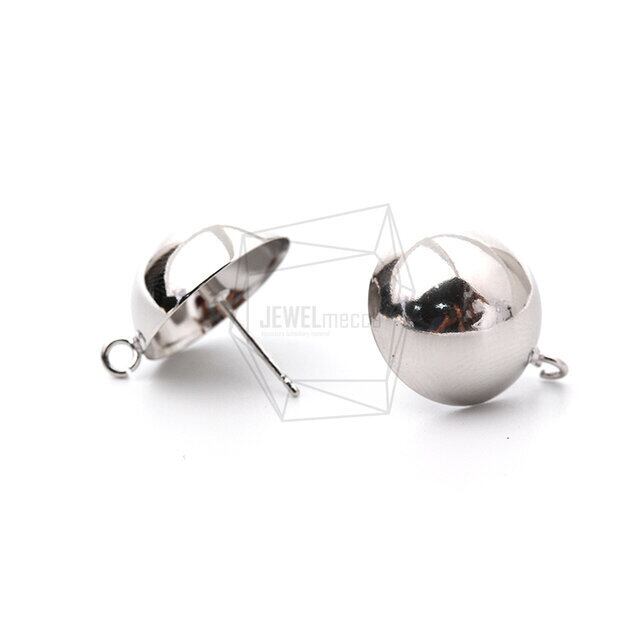 ERG-1084-R/2PCS/Half Ball Post Earring/15mm X 20mm/Rhodium Plated Over Brass