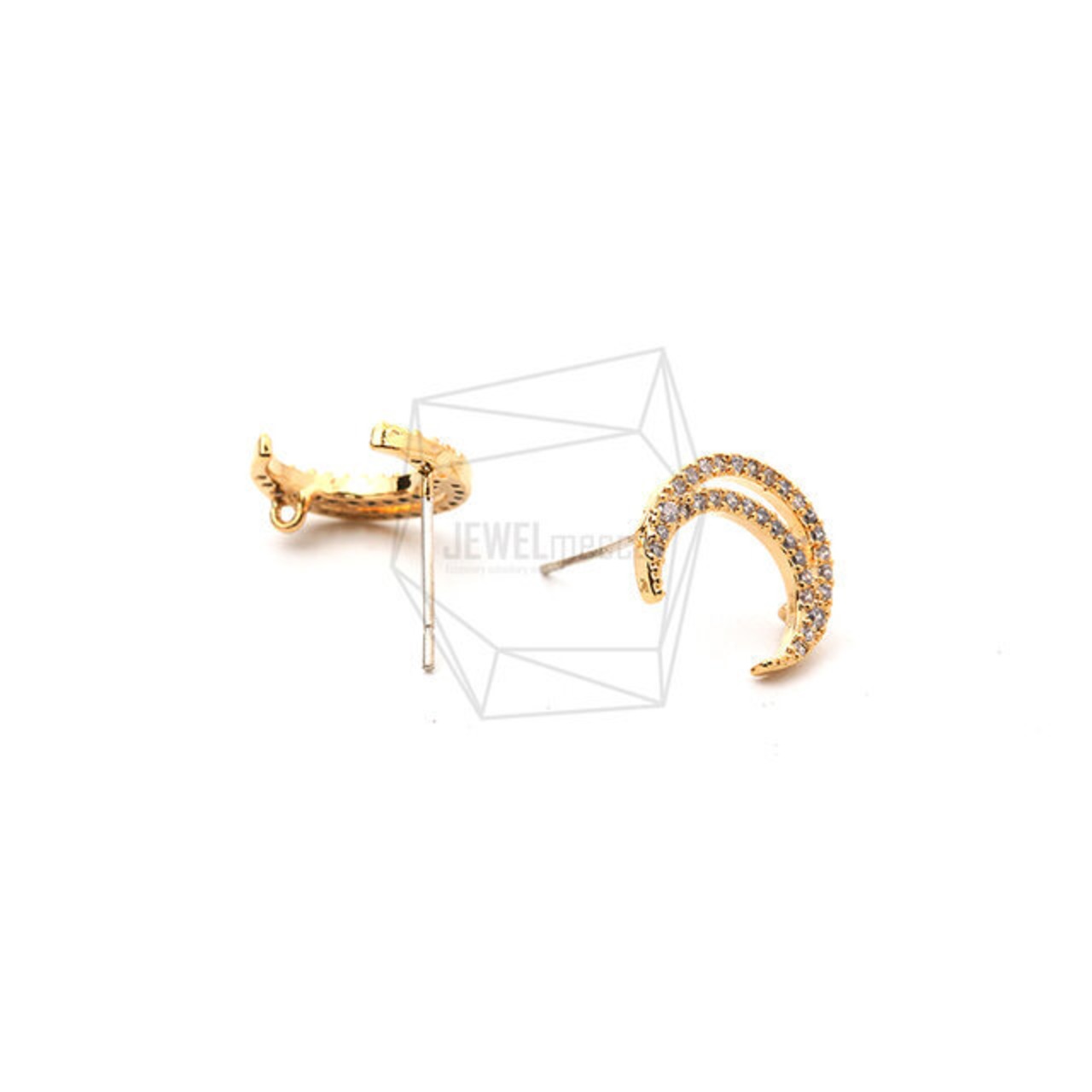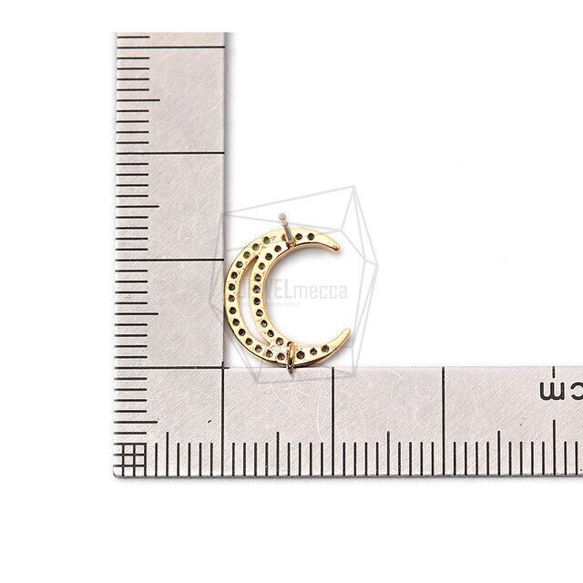 ERG-1087-G/2PCS/CZ Moon Earring Post/12mm x 13mm/Gold Plated over Brass/925 Sterling Silver Post,CZ