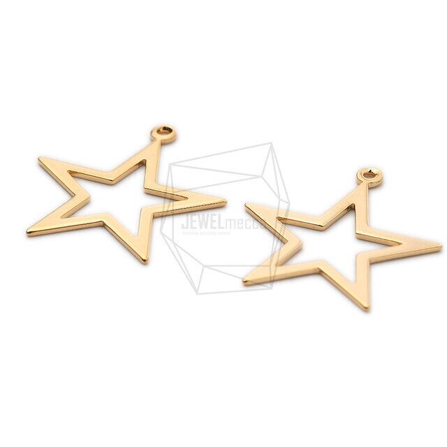 PDT-2103-G/4Pcs-star Pendant/ 24mmx26mm / Gold Plated over brass