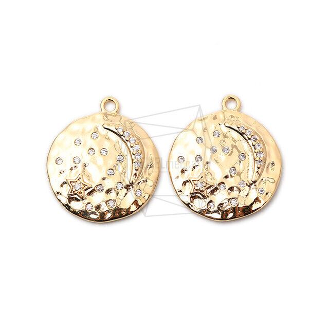 PDT-2106-G/2Pcs-Cubic Zirconia Setting Star and moon Pendant / 22mm x 25mm/Gold Plated over brass,CZ