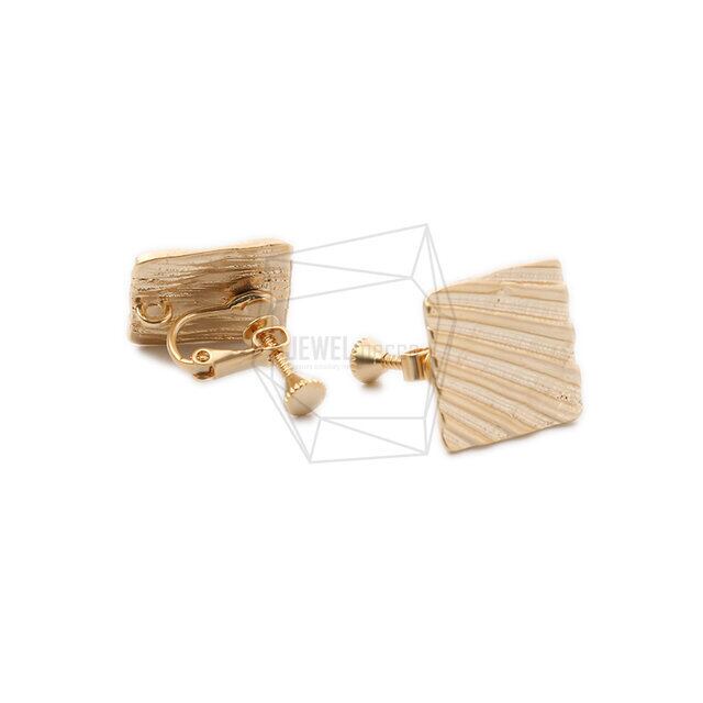 ERG-1097-MG/2PCS/shell-shaped Square Clip On Earring/18mm x 18mm/Matte Gold Plated over Tin/Titanium post