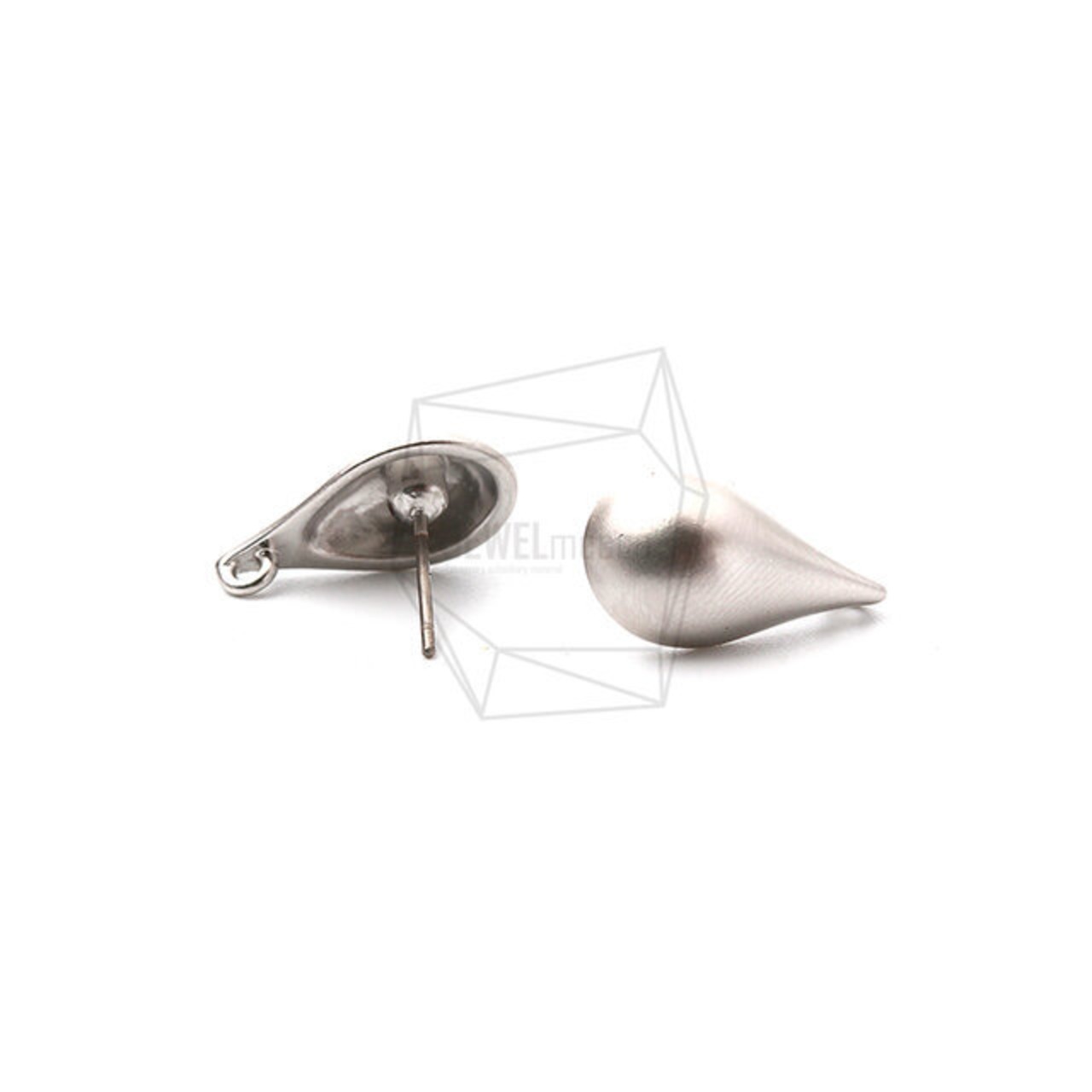 ERG-1103-MR/2PCS/Mini Water Drop Post Earrings/10mm X 18mm/Matte Rhodium Plated Over Brass,Titanium Post