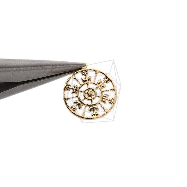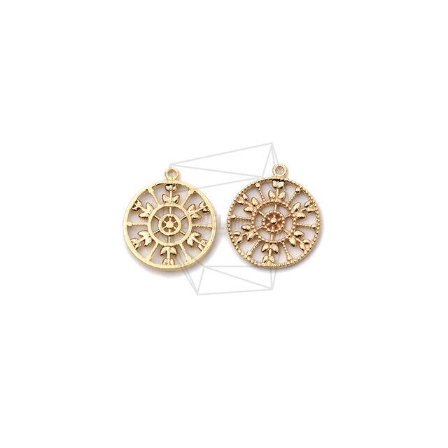 PDT-2107-G/2PCS/Round Flower Charm Pendant/13mm X 13mm/Gold Plated Over Brass