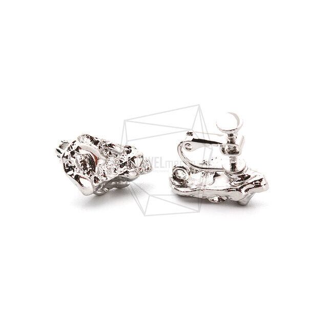 ERG-1111-R/2PCS/Hammered Non Pierced Screw Back Clips Earring/12mm X 20mm/Rhodium Plated Over Tin