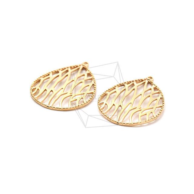 PDT-2113-MG/2PCS/Water Drop Laser Cut Pendant/21mm X 28mm/Matte Gold Plated Over Brass