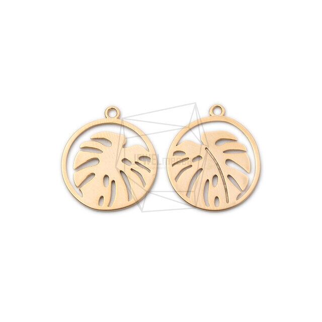 PDT-2114-MG/2PCS/Round Monstera Pendant/17mm X 20mm/Matte Gold Plated Over Brass