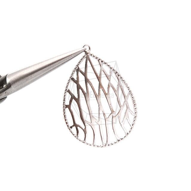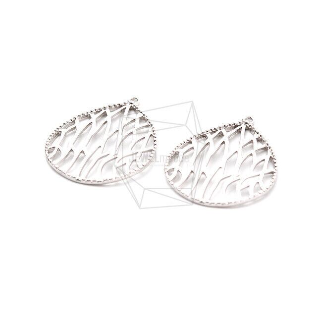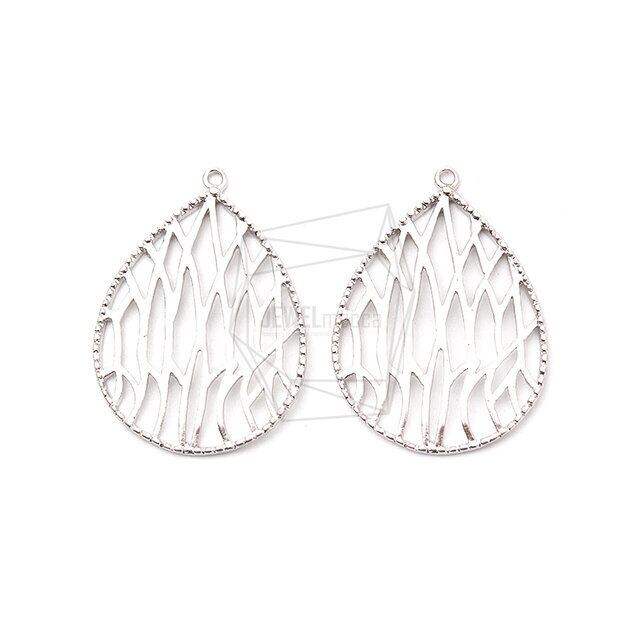 PDT-2113-MR/2PCS/Water Drop Laser Cut Pendant/21mm X 28mm/Matte Rhodium Plated Over Brass