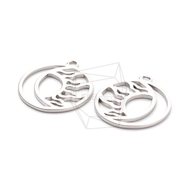 PDT-2117-MR/2PCS/Round Evil Eye Pendant/18mm X 20mm/Matte Rhodium Plated Over Brass