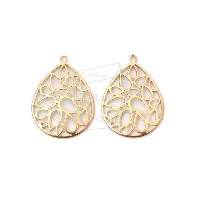 PDT-2118-MG/2PCS/Water Drop Laser Cut Pendant/21mm X 28mm/Matte Gold Plated Over Brass