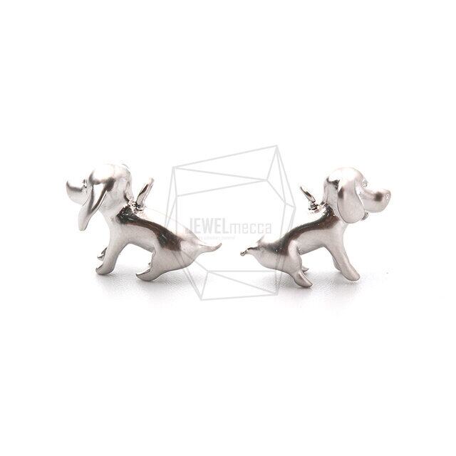 PDT-2121-MR/2PCS/Cute Puppy Pendant/17mm X 12mm/Matte Rhodium Plated Over Brass