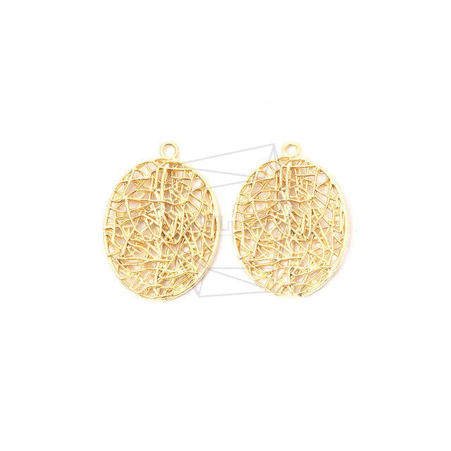 PDT-2130-MG/2PCS/Net Oval Pendant/18mm X 25mm/Matte Gold Plated Over Brass