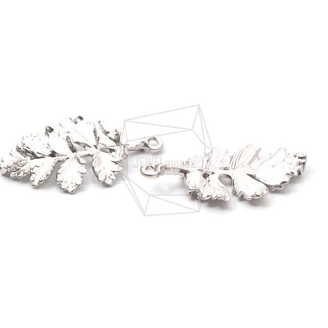 PDT-2134-MR/2Pcs-leaf Pendant/ 18mm x 32mm/matte Rhodium Plated over Tin