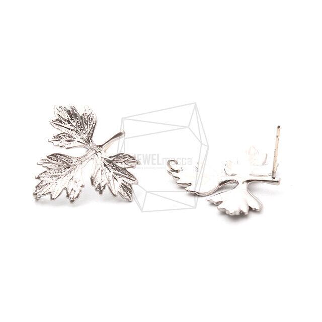 ERG-1117-MR/2PCS/Maple Leaf Post Earrings/25mm X 23mm/Matte Rhodium Plated Over Brass Silver Post