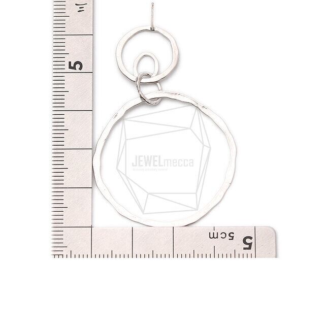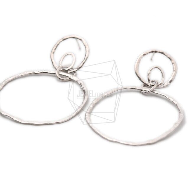ERG-1121-MR/2PCS/Hammered Round Post Earrings/35mm X 53mm/Matte Rhodium Plated Over Brass Silver Post