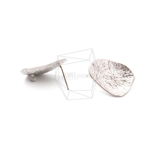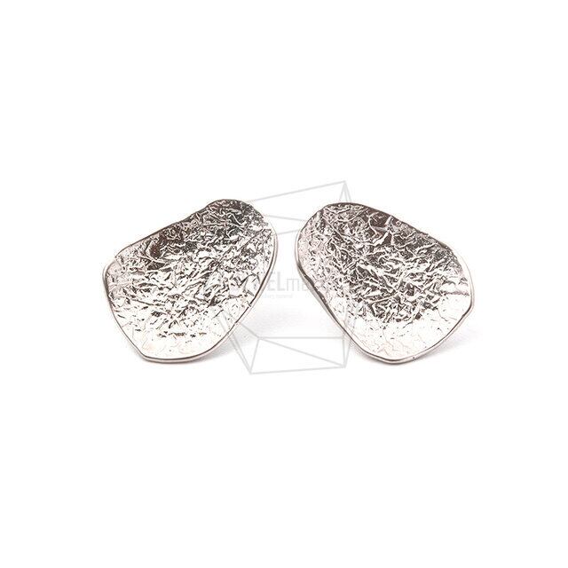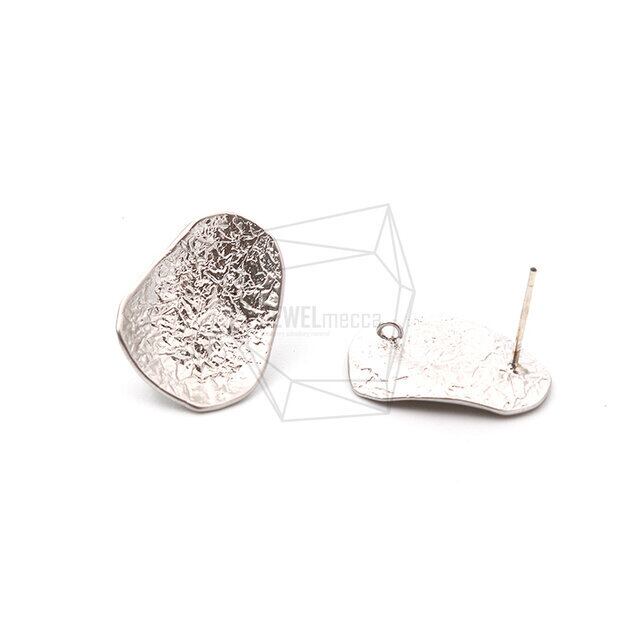 ERG-1122-MR/2PCS/Hammered Curve Post Earrings/16mm X 20mm/Matte Rhodium Plated Over Brass Silver Post