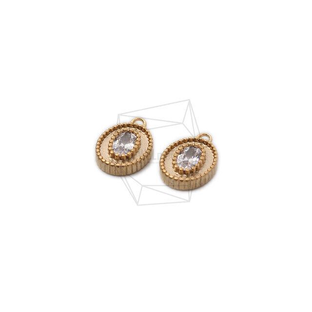 PDT-2123-MG/2PCS/Cubic Oval Pendant/8mm X 11mm/Matte Gold Plated Over Brass