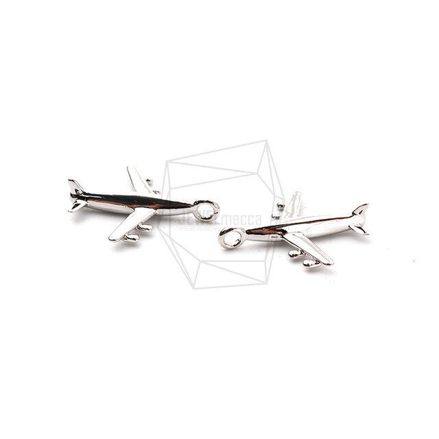 PDT-2127-R/2PCS/Airplane Pendant/13mm X 15mm/Rhodium Plated Over Brass