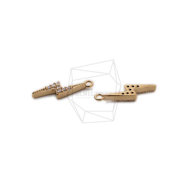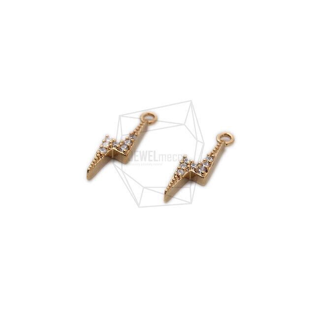 PDT-2128-G/2PCS/Cubic Lightning Pendant/4mm X 13mm/Gold Plated Over Brass