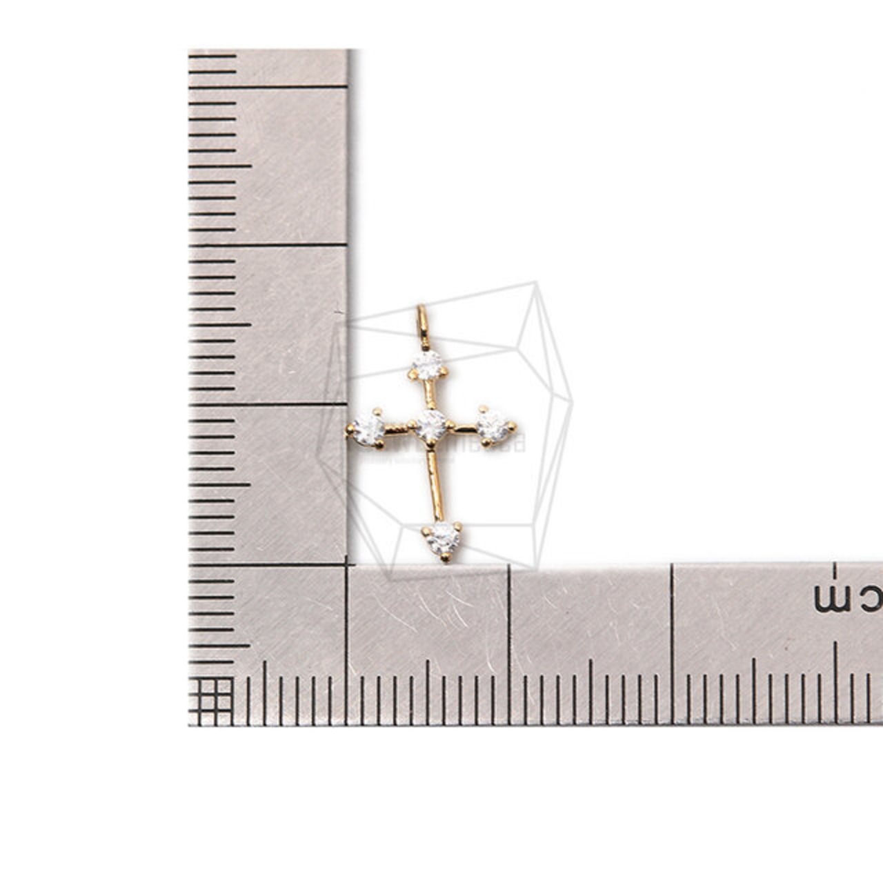 PDT-2131-G/2PCS/Cubic Cross Pendant/10mm X 16mm/Gold Plated Over Brass