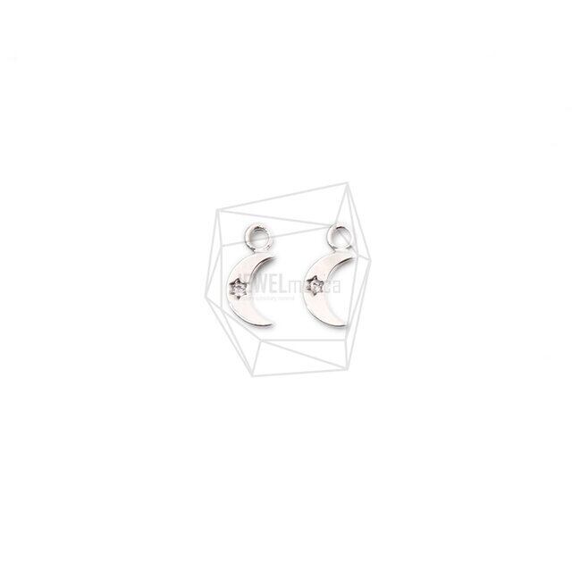 PDT-2132-R/2PCS/Cubic Crescent Pendant/5mm X 10mm/Matte Rhodium Plated Over Brass