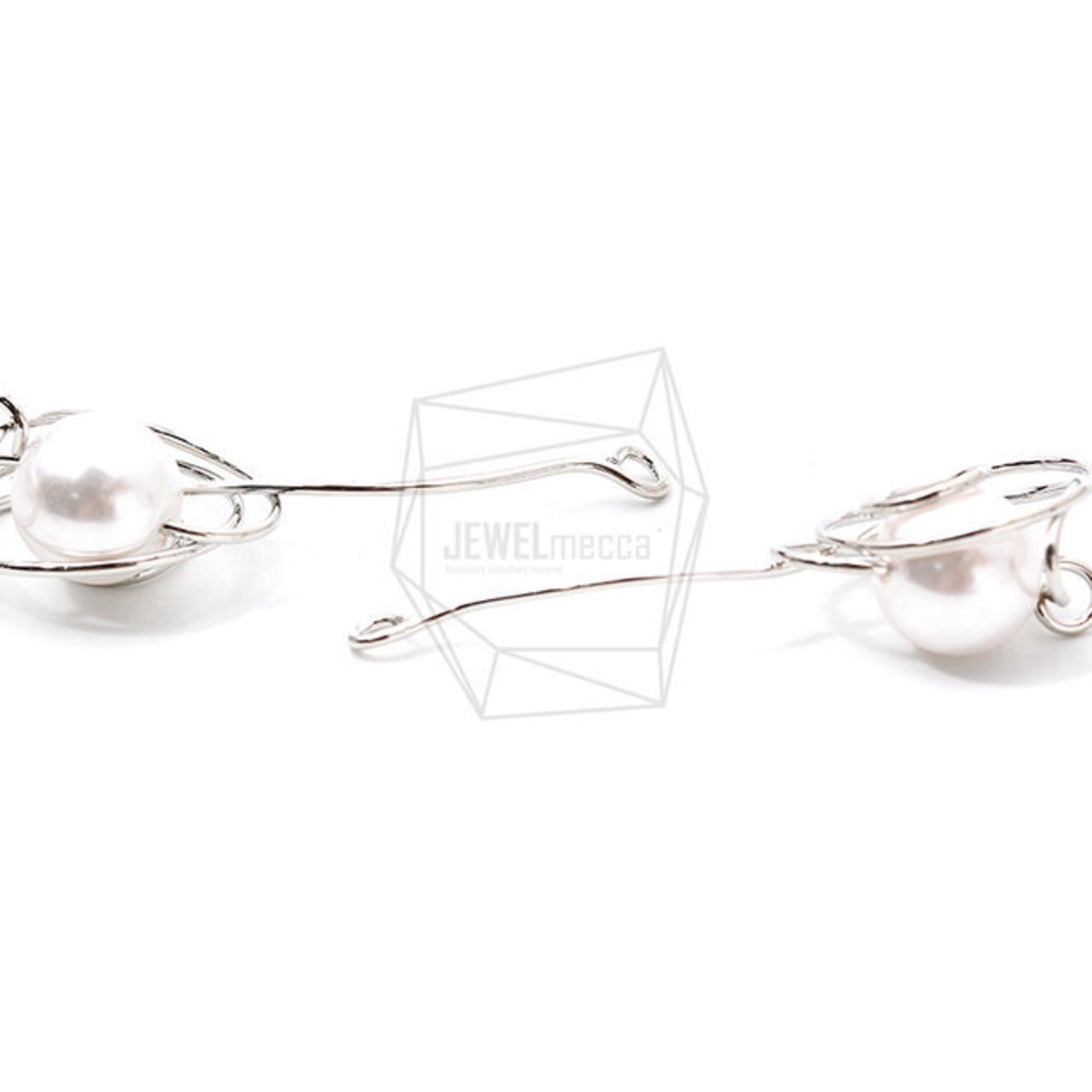 ERG-1128-R/2pcs/Wire round Pearl Pendant/23mm x 54mm/Rhodium Plated Over Brass