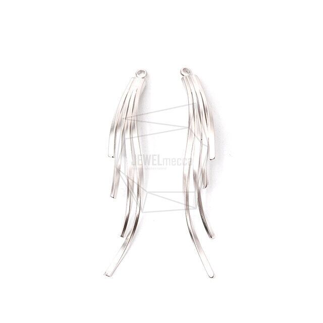 ERG-1129-MR/2PCS/Bar Wings Pendant/10mm X 51mm/Matte Rhodium Plated Over Brass