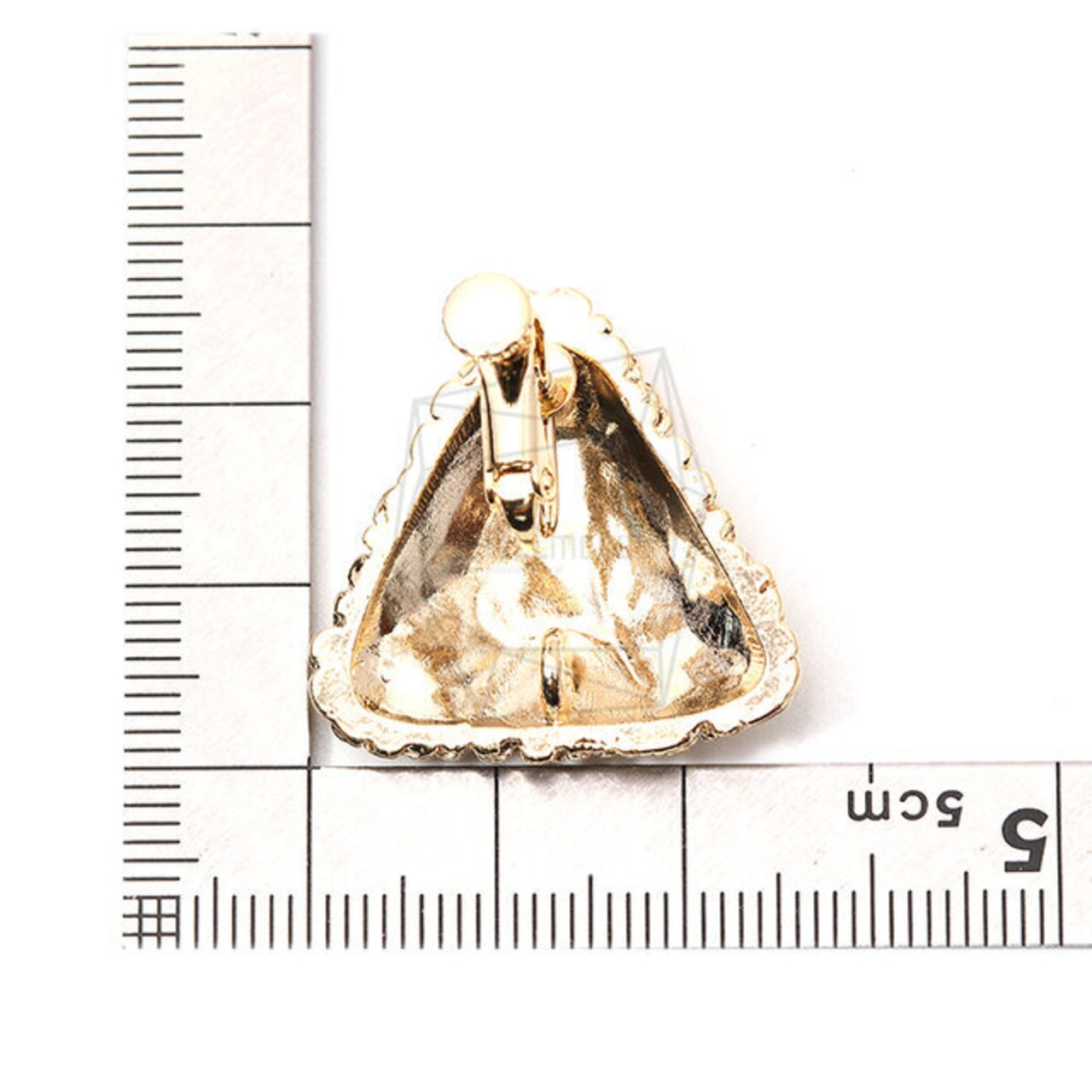 ERG-1133-G/2pcs/Triangle Dots Non Pierced Screw Back Clips Earring/26mm x 26mm/Gold Plated Over Tin,Titanium post