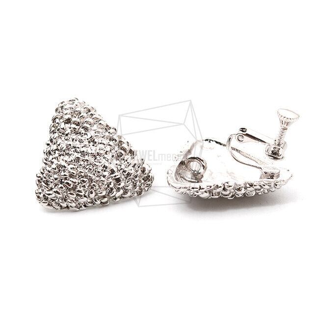 ERG-1133-R/2pcs/Triangle Dots Non Pierced Screw Back Clips Earring/26mm x 26mm/Rhodium Plated Over Tin,Titanium post
