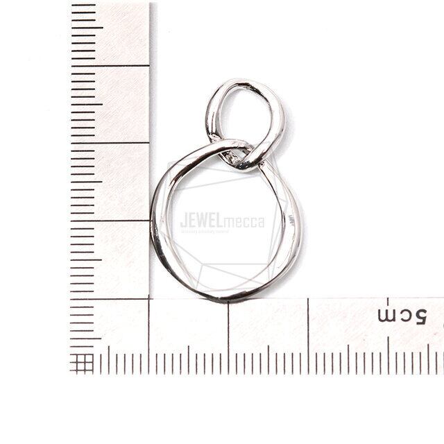 PDT-853-R/4Pcs-Double ring Pendant/ 20mm x 28mm/ Rhodium Plated Over pewter