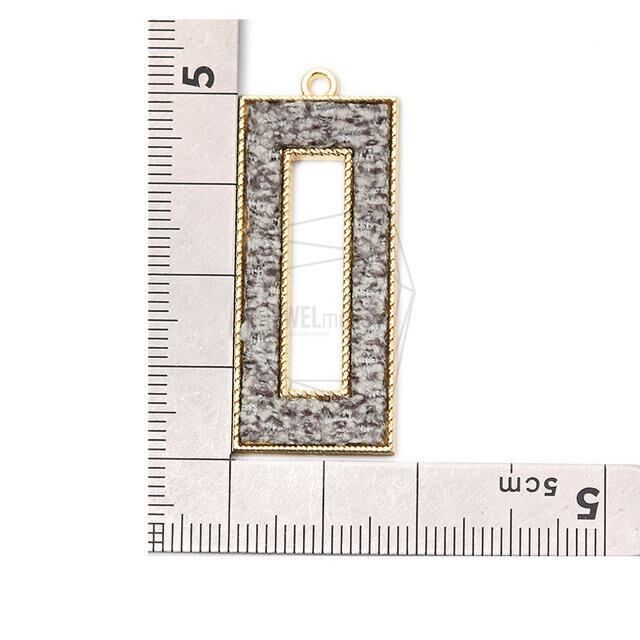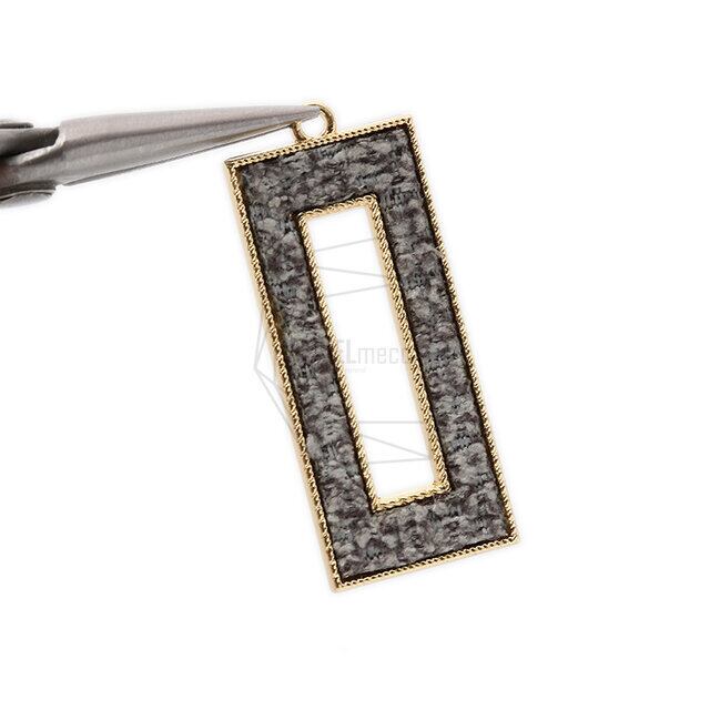 PDT-2144-G/2Pcs-Rectangular Frame fabric Pendant/18mm x 42mm /Gold Plated over Brass, fabric