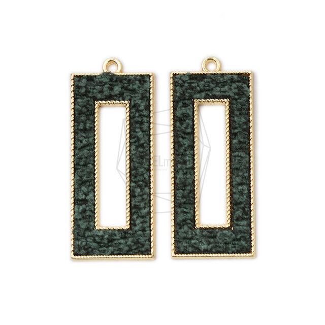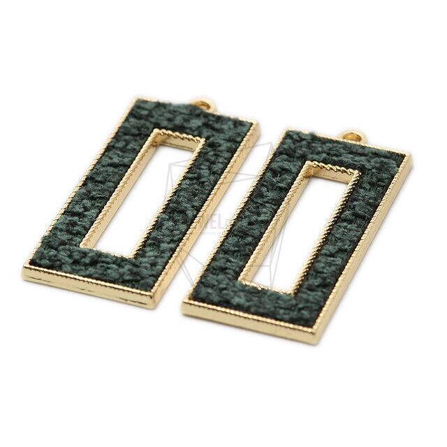 PDT-2145-G/2Pcs-Rectangular Frame fabric Pendant/18mm x 42mm /Gold Plated over Brass, fabric
