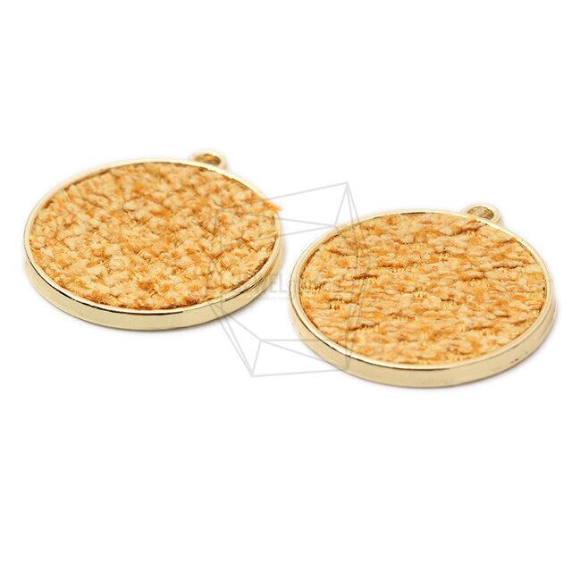 PDT-2148-G/2Pcs-Round Frame fabric Pendant/25mm x 27mm /Gold Plated over Brass, fabric