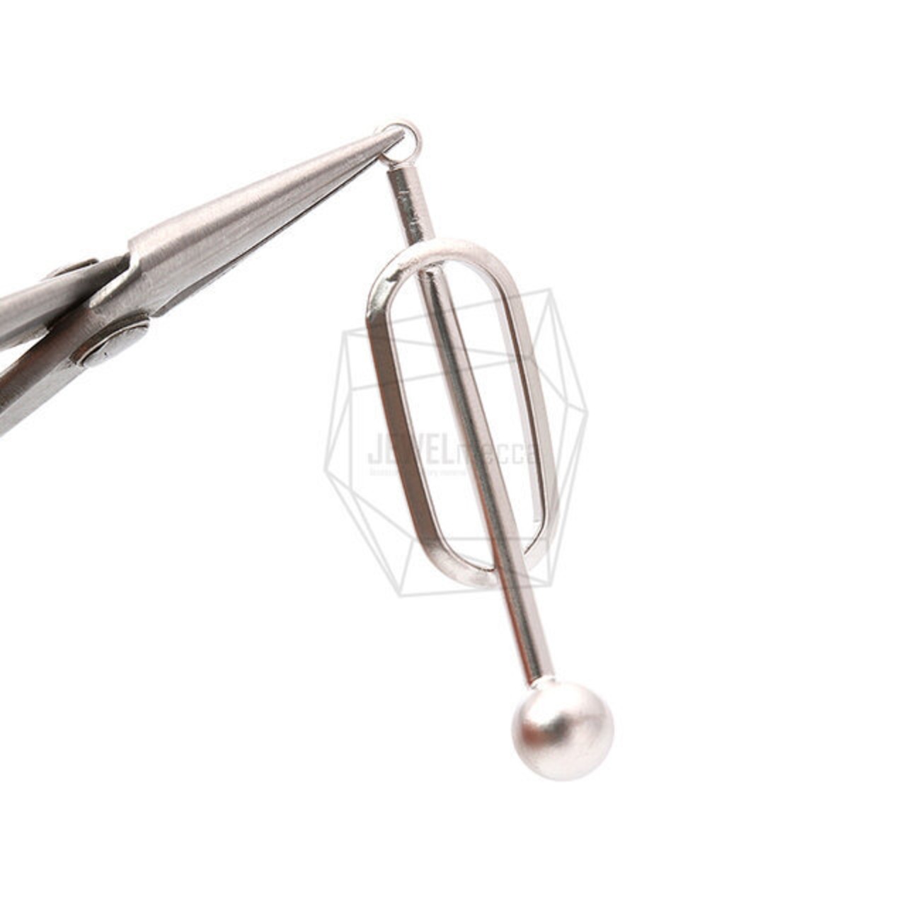 PDT-2156-MR/2PCS/Bar With Ball Pendant/14mm x 52mm/Matte Rhodium Plated over Brass