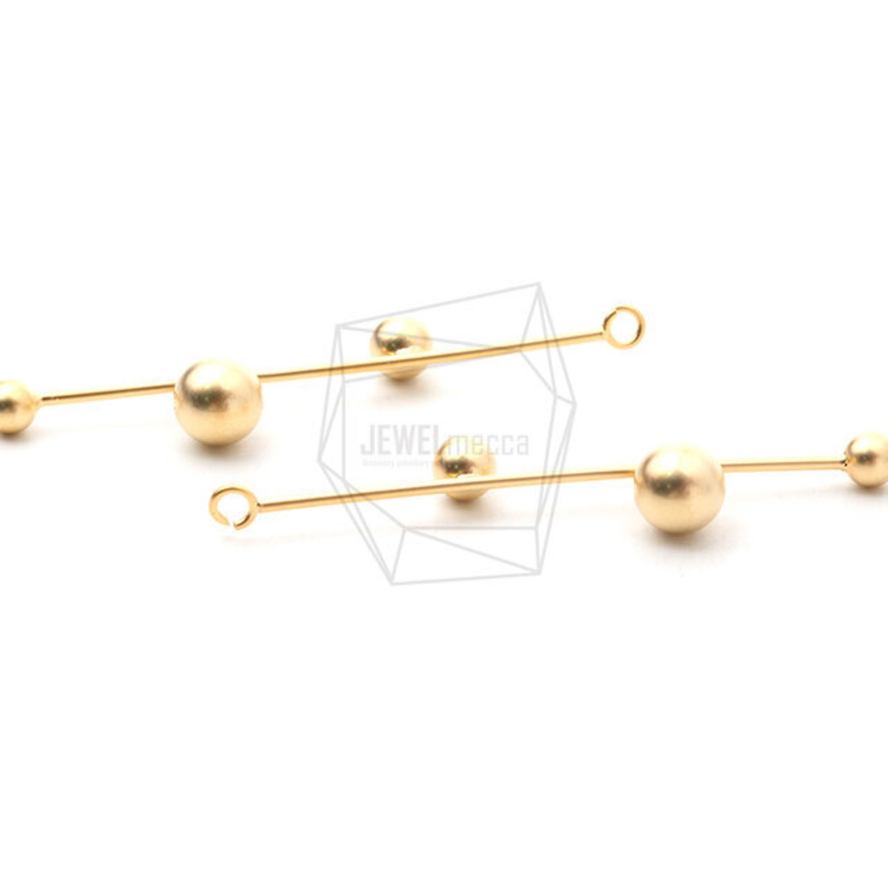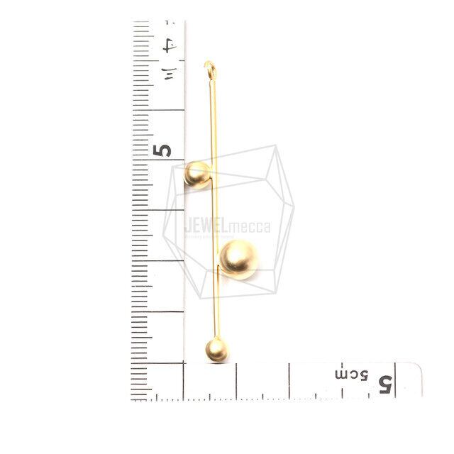 ERG-1142-MG/2PCS/Stick Bar ball Earring Charm/15mm X 60mm/Matte Gold Plated Over Brass