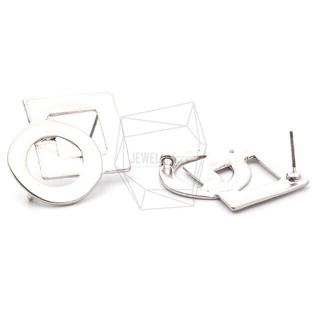 ERG-1146-MR/2PCS/Square circle Post Earrings/29mm X 34mm/Matte Rhodium Plated Over Tin, Titanium post